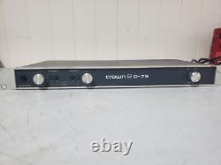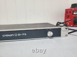 Amplificateur de puissance stéréo Crown D-75 - Performances audio professionnelles classiques - Fonctionnel. Amplificateur légendaire Crown D-75, connu pour son son clair et non coloré ainsi que sa construction robuste. Parfait pour le monitoring en studio, les systèmes hi-fi ou les applications PA de petite taille. Amplificateur de puissance stéréo compact. Contrôles de niveau sur le panneau avant pour chaque canal.